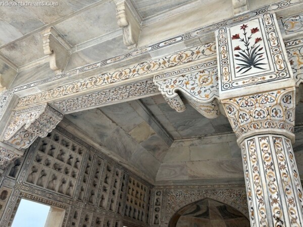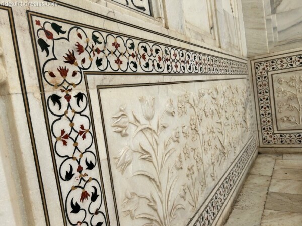 This pietra dura technique—embedding semi-precious stones into marble—is one of the most distinctive art forms I’ve seen in India, and something I hadn’t encountered in other Islamic countries nearby. The craftsmanship was simply mesmerizing.