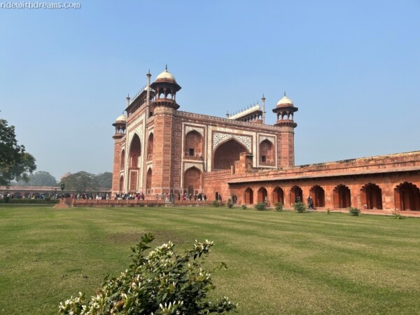 Beyond the mausoleum, the complex includes a majestic red sandstone gateway, a mosque, a matching guest house (jawab), and expansive Charbagh gardens, divided by reflective water channels symbolizing paradise in Islamic tradition. I found the red sandstone mosque nearly as impressive as the Taj itself, and we spent a long time wandering the gardens and admiring the architecture.