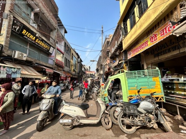 After sightseeing, we took an auto to Sadar Bazar, a lively local market near Agra Fort Station. The area was buzzing with people preparing for the New Year—cows wandering the streets, autos honking, cars squeezing through narrow lanes, and shoppers everywhere.