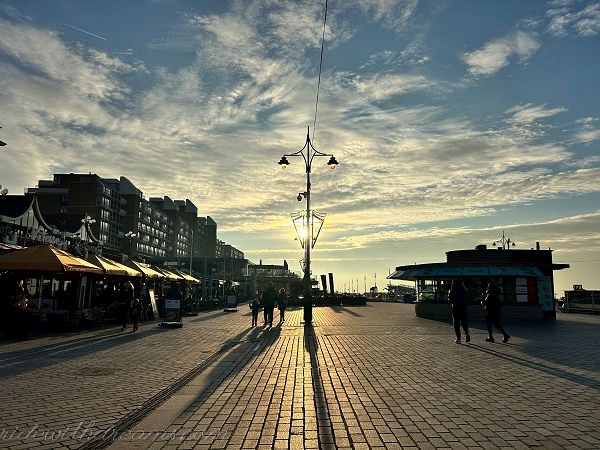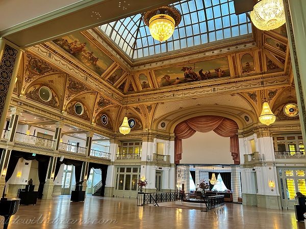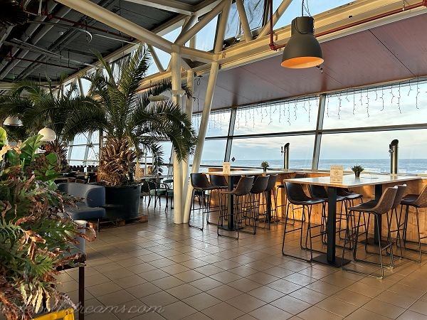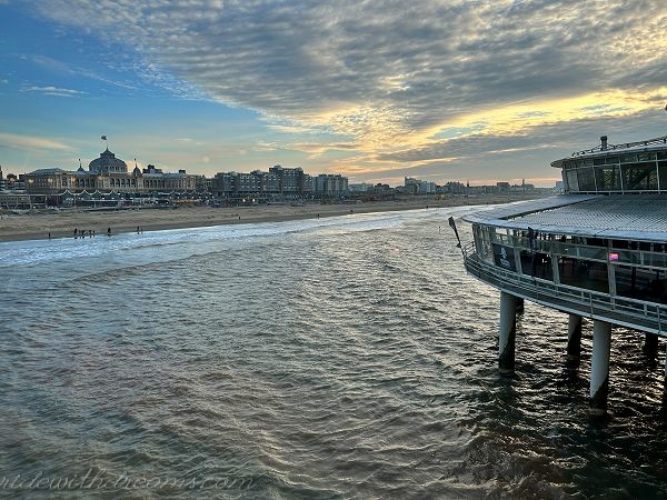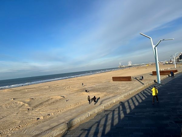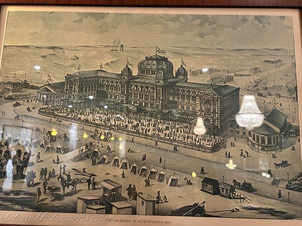 The Grand Hotel Amrâth Kurhaus and the Pier were definitely the highlights of our visit. From the outside, the Kurhaus looks like a grand and luxurious seaside hotel, but its interior was even more impressive. The lobby felt almost like a modern museum, filled with animal sculptures and contemporary décor. Everyone is free to enter its magnificent main hall, which looks like a ballroom from a royal palace. It was absolutely breathtaking. Along the walls, we found many photographs illustrating the hotel’s long history, dating back over a century. One particularly striking photo showed two military planes flying directly over the Kurhaus during the war—a powerful reminder of how much has changed, yet how much has remained.
