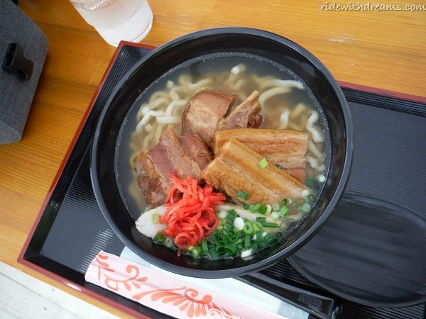 We decided to stop by there for before going up north. Unfortunately, it is actually 5km south from airport, so we had to ride extra 10km in order to have lunch there, but anyway, it was nice to see the beautiful color sea, just one street away from the restaurants, and we could even see planes arriving and taking off from afar. There, we had our first Okinawa Soba of this trip! It was most the best Okinawa Soba we ever ate, but the noodles were still so fresh and the soup tasted so good!